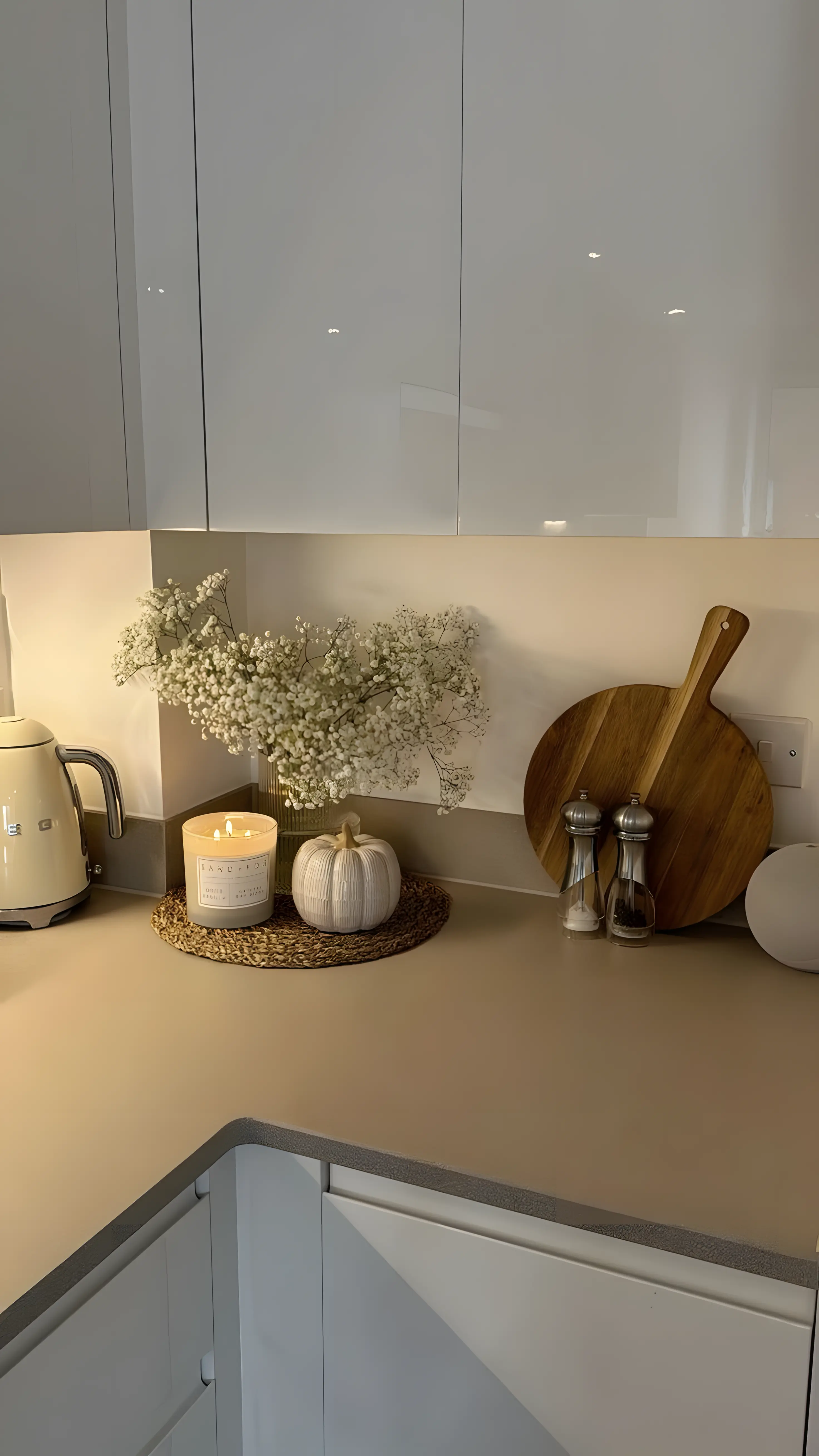 Then remove three to five objects from surfaces: a side table, a console, a kitchen counter. Not to discard. Just to clear.