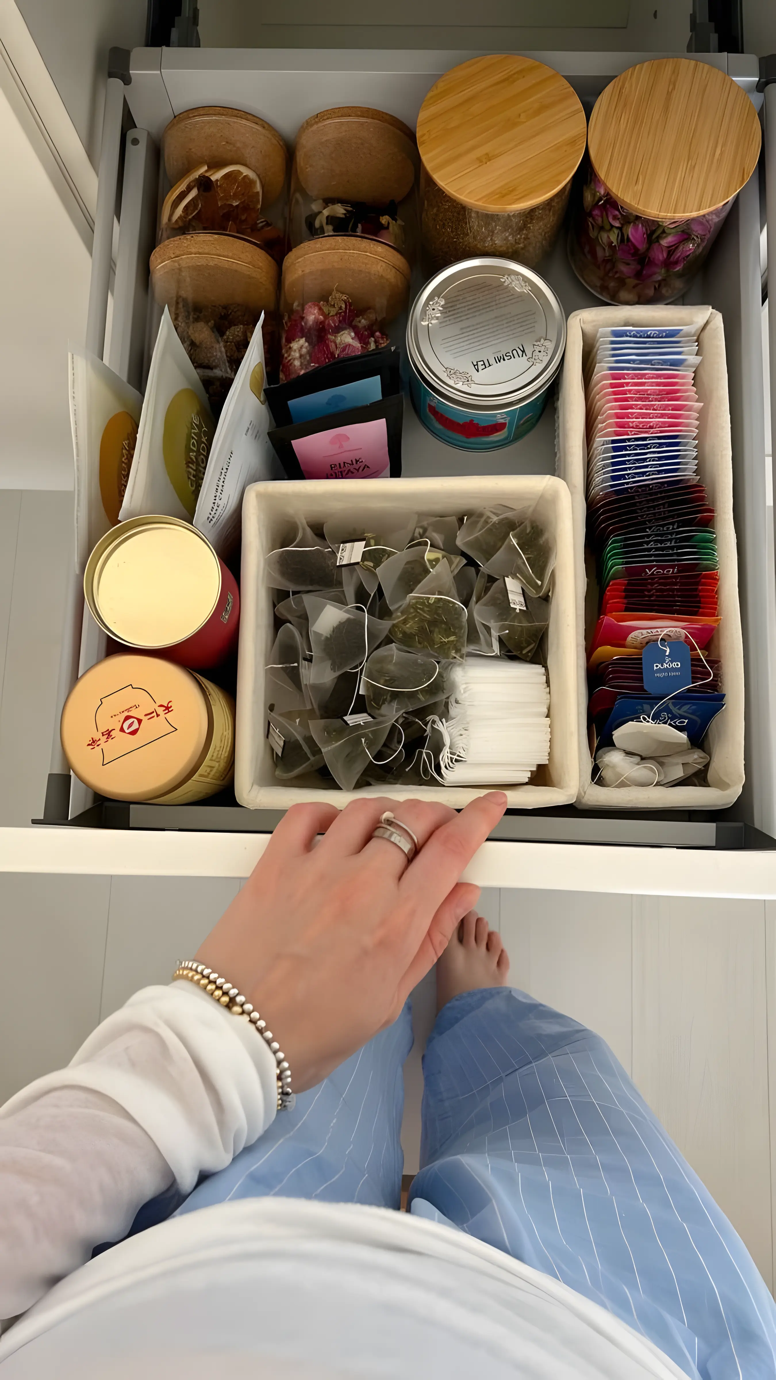 Their favourite tea waiting in the cupboard.