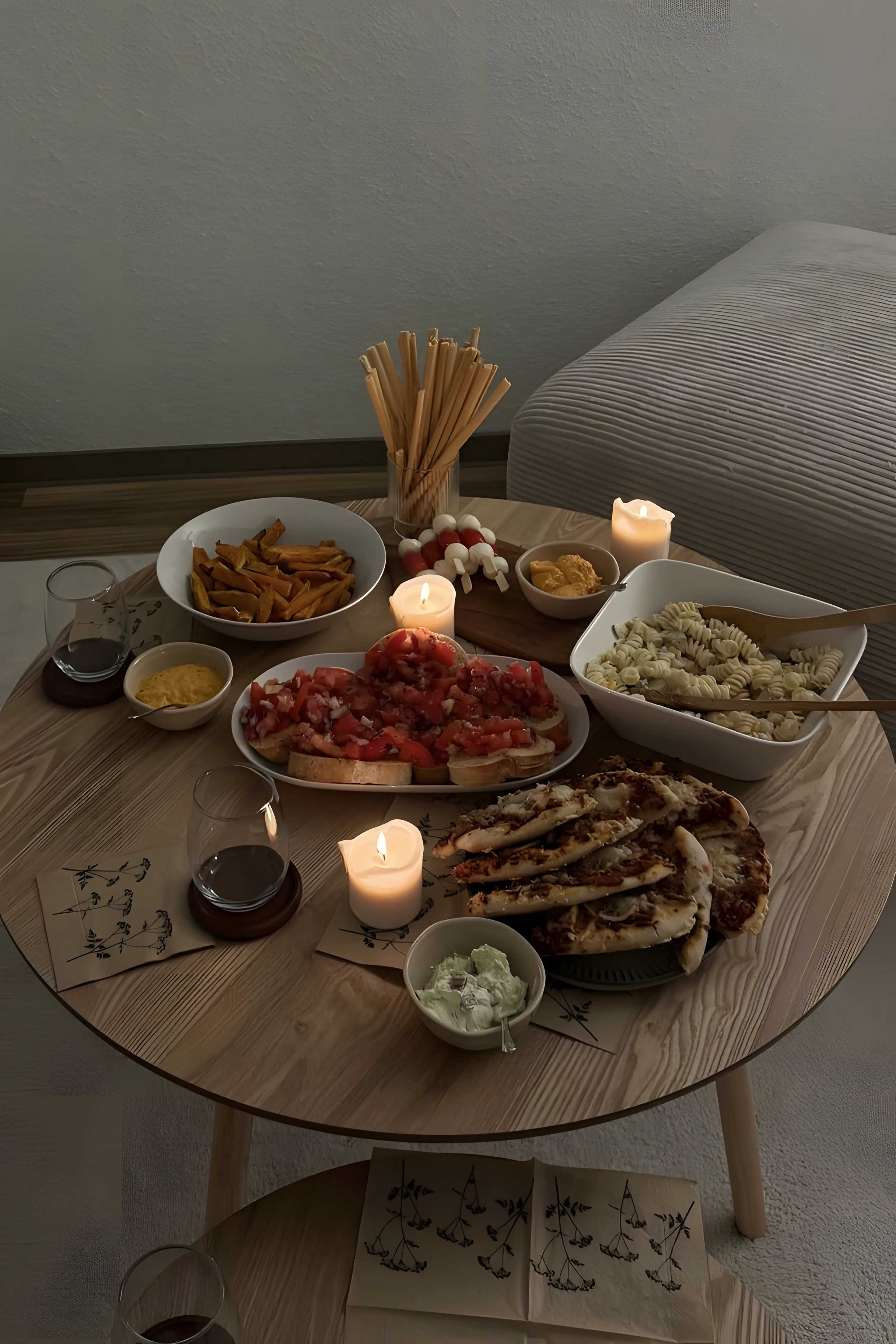 Turn off the overhead lamp. Let a side lamp glow against the wall. If it’s early evening, allow daylight to linger as long as it can. A single candle on the table is enough; not a row, not a spectacle. Just a point of warmth.