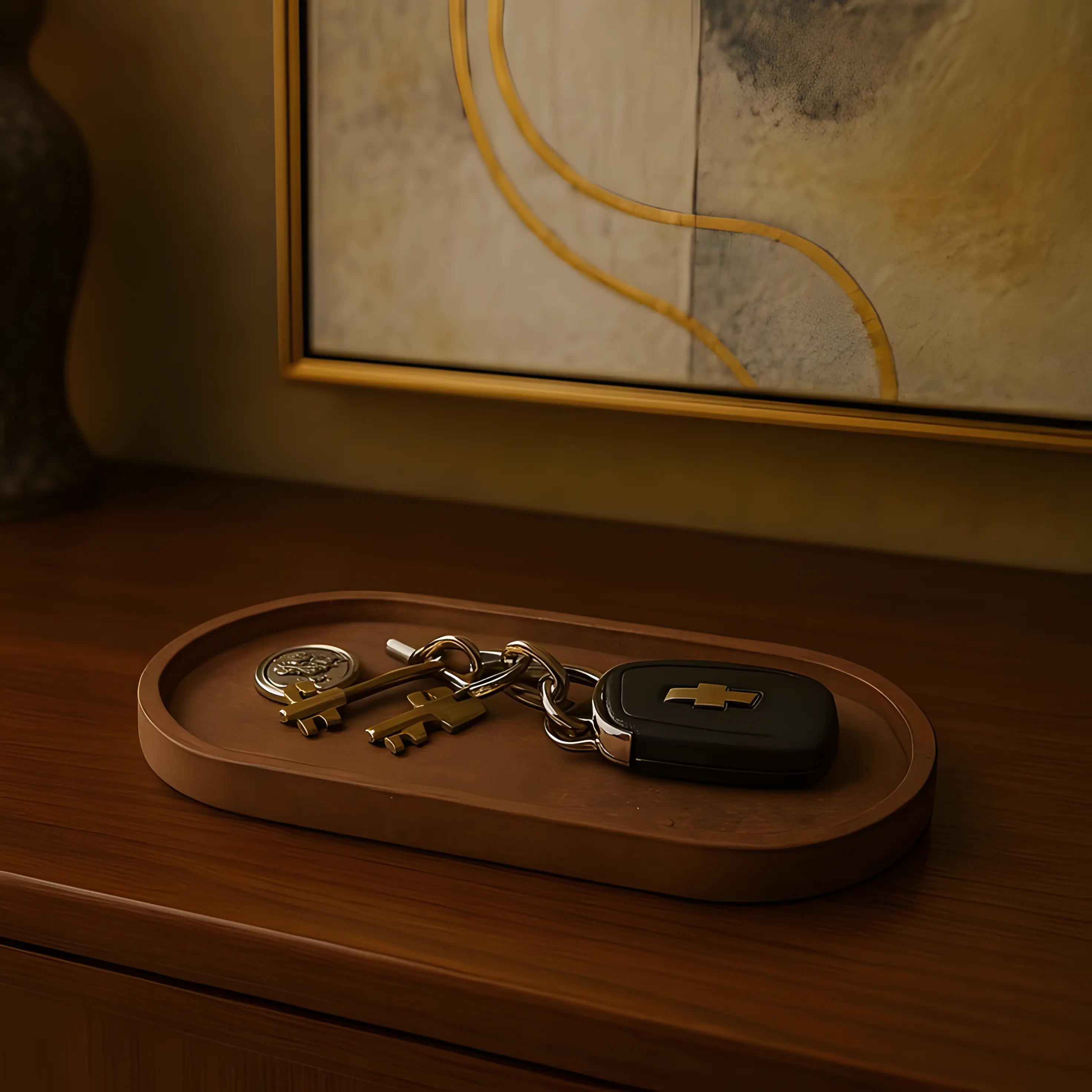 A wooden bowl for keys.
